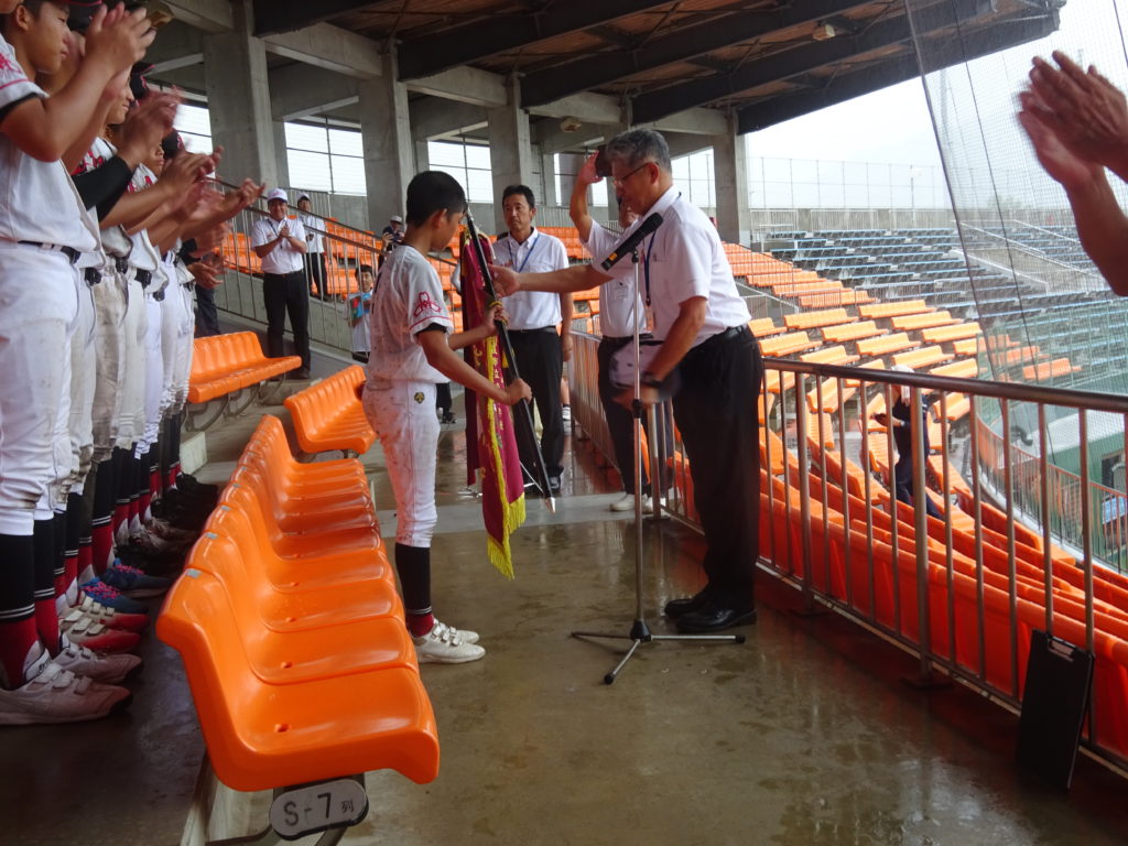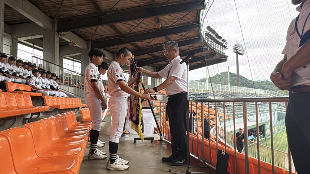 HPLベースボールパークにて、第74回近畿中学校総合体育大会(軟式野球)の表彰式および第3代表旗の授与が行われました。